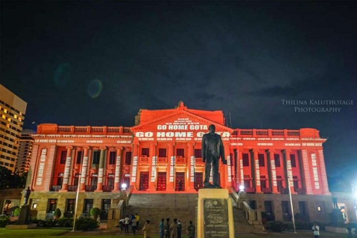 ඒ, ප්රක්ෂේපණ යන්ත්ර (Projectors) හරහා ප්රතිනිර්මාණිත ග්රැෆික් නිර්මාණයක් ජනාධිපති කාර්යාල ගොඩනැගිල්ල වෙත ප්රක්ෂේපණය කිරීමයි.