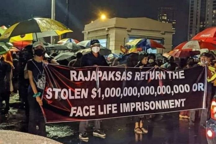 රාජපක්ෂ පවුල සොරකම් කළ ධනය ඩොලර් ට්‍රිලියන 1000 ක් බව ගෝල්ෆේස් අරගලකරුවන් සොයා ගැනීම පිළිබඳ කිසිදු සැකයක් නැත…..