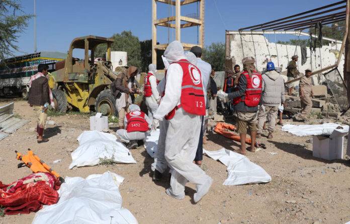 මෙම ප්රහාරය සම්බන්ධයෙන් හවුති සටන්කාමින් ප්රකාශ කර තිබුණේ, මෙම නවාතැන ජාත්යන්තර සංක්රමණ සංවිධානයේ සහ රතු කුරුස සංවිධානයේ අධීක්ෂණය යටතේ පවතින බවත්, එය ඉලක්ක කර ගැනීම යුධ අපරාධයක් වන බවත්ය.