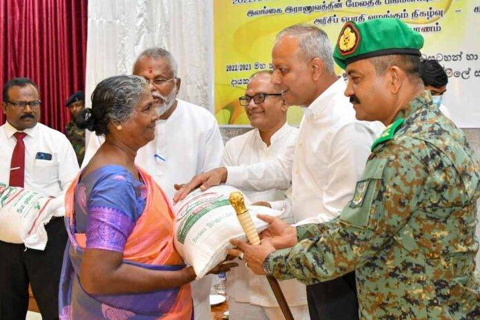 ජනාධිපතිතුමාගේ අරමුණ වුනේ එහි පළමු වැඩසටහන යාපනය දිස්ත්රික්කයෙන් ආරම්භ කිරීමටයි. එනිසා අද දින ඔබට මෙම සහල් ලබාදීමට පියවර ගැනීම සම්බන්ධයෙන් මම යුද හමුදාවටත්, ගුවන් සහ නාවික හමුදාවටත්, පොලිසියටත් ස්තුතිවන්ත වෙනවා.