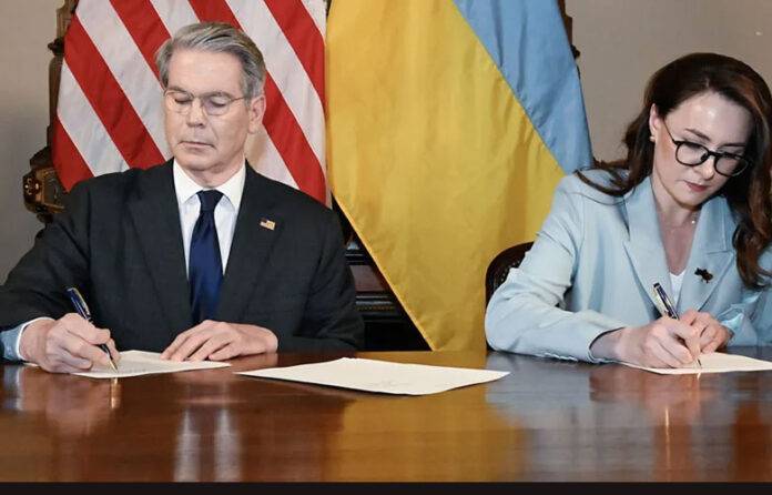 මැයි 01; ලෝකය(අවුට්බවුන්ඩ් ටුඩේ): පසුගිය පෙබරවාරි මාසයේදී එක්සත් ජනපද ජනාධිපති ඩොනල්ඩ් ට්රම්ප් හා යුක්රේන ජනාධිපති වොලොඩිමියර් සෙලෙන්ස්කි අතර පැවති අසාර්ථක සාකච්ජාවෙන් අනතුරුව බිඳ වැටුණු ඛනිජ ගිවිසුම මාස ගණනක දැඩි සාකච්ජා වලින් අනතුරුව දෙපාර්ශවයේම සහභාගිත්වය යටතේ ඊයේ(30)දිනයේදී අත්සන් කර ඇති බව වාර්තා වේ.