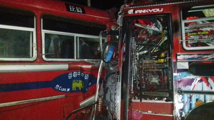 බස් රථ දෙකක් මුහුණට මුහුණ ගැටී රිය අනතුරක් සිදුව ඇති බව වාර්තා වේ.