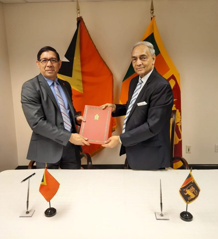 ශ්රී ලංකා ප්රජාතාන්ත්රික සමාජවාදී ජනරජය සහ ටිමෝර් ප්රජාතාන්ත්රික ජනරජය අතර රාජ්ය තාන්ත්රික සබඳතා ඇති කර ගැනීම සම්බන්ධයෙන් වන ඒකාබද්ධ ප්රකාශයට අත්සන් තැබීමේ උළෙල එනම් 2022 මැයි මස 04 වන දින, නිව්යෝර්ක් නුවර එක්සත් ජාතීන්ගේ ශ්රී ලංකා නිත්ය නියෝජිත කාර්යාලයේදී පැවැත්විණි.