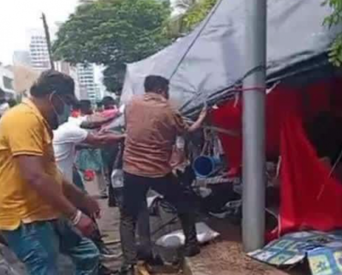 පුවත් ගෝඨාගෝගම මහනුවර ශාඛාවටත් ප්රහාරයක් ! May 9, 2022 0 500 FacebookTwitterPinterestWhatsApp මීට සුළු මොහොතකට පෙර මහනුවර නගරයේ පිහිටි ගෝඨා ගෝ ගම මහනුවර ශාඛාවටද ප්රහාරයක් එල්ල වී තිබෙනවා. විරෝධතාවයේ නිරත පිරිසහට පහර දී ඇති මැරයන්, එම ස්ථානයේ ඉදිකර තිබූ අට්ටාල, කූඩාරම්වලටද හානි සිදුකර තිබේ. UN