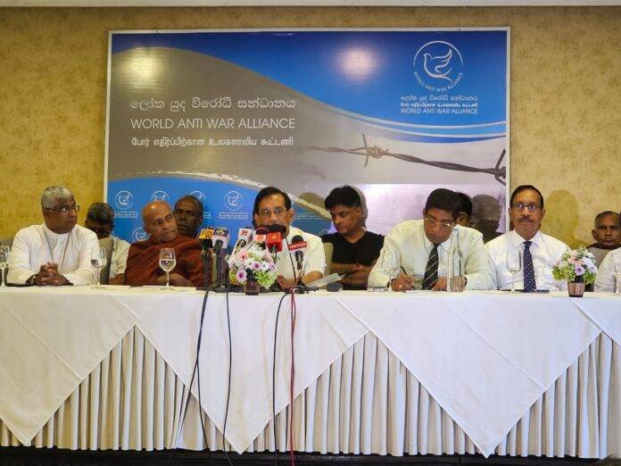 හිටපු සෞඛ්ය අමාත්ය වත්මන් සමඟි බලවේගයේ පාර්ලිමේන්තු මන්ත්රී රාජිත සේනාරත්න මහතාගේ මූලිකත්වයෙන් ආරම්භ කෙරුණු එම ලෝක යුද විරෝධී සන්ධානයට දේශපාලන පක්ෂ භේදයකින් තොරව සහය ලැබී තිබෙන අතර සිවිල් සංවිධාන මෙන්ම ආගමික ප්රජාවද ඒ සමඟ එක්ව සිටියි.