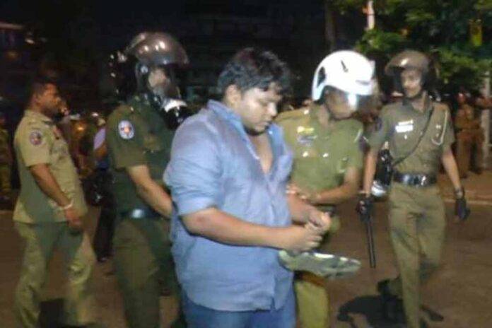අයුතු ජන රාශියක සාමාජිකයින් වීම, පොලිසියට පහරදීම සහ පොලිසියේ රාජකාරියට බාධාකිරීම යන චෝදනා යටතේ ඔවුන්ව පෙරේදා රාත්රියේ කිරිබත්ගොඩ පොලීසිය විසින් අත් අඩංගුවට ගෙන තිබිණි.