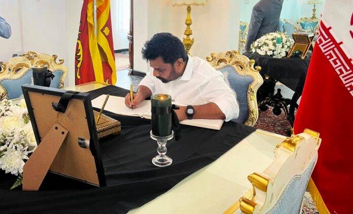 මැයි 21, කොළඹ (LNW): ඉරාන ජනාධිපති ඊබ්රහිම් රයිසි, විදේශ අමාත්ය හොසෙයින් අමීර් අබ්දුල්ලාහියන් සහ අනෙකුත් රාජ්යතාන්ත්රිකයින්ගේ හදිසි වියෝවීම් පිළිබඳව, අද(21) දින පස්වරුවේ ඉරාන තානාපති නිල නිවෙසේදී ජාතික ජන බලවේගයේ නායක අනුර කුමාර දිසානායක මහතා, ශ්රී ලාංකේය ජනතාව ලෙසත් ජාතික ජන බලවේගය ලෙසත් සිය සාතිශය ශෝකය පළ කර සිටීමට එක්විය.