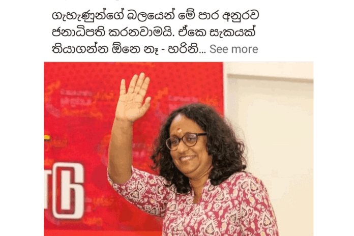 ඇත්තෙන්ම මමත් මුලින් හිතාගෙන හිටියේ හරිනි යනු ජ.වි.පෙ. සාම්ප්රදායික පැවැත්මට පිටින් ඉන්න විකල්ප ලිබරල් ක්රියාකාරිනියක් විදියට.. නමුත් මට දැන් හිතෙන්නේ එහෙම එකකුත් නෑ කියන එක කාලයාගේ ඇවෑමෙන් ටික ටික එළියට ආවා කියල..