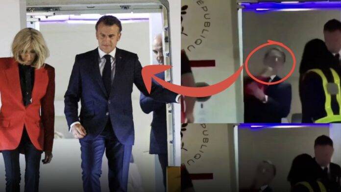 ඉකුත් ඉරිදා සවස වියට්නාමයේ හැනෝයි හි දී එම්මානුවෙල් මැක්‍රොන් සහ ඔහුගේ බිරිඳ ගුවන් යානයේ දොරටුව අසල සිටියදී සිය බිරිඳ විසින් ඔහුගේ මුහුණ පසෙකට තල්ලු කරන අවස්ථාවක් දැක්වෙන දර්ශනයක් විදෙස් මාධ්‍ය කැමරා කාචයක සටන් වී තිබෙනු දක්නට ලැබිණි.