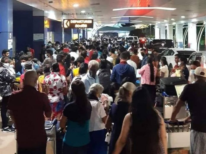 පාස්පෝට් පෝලිම් වැඩි වෙලාලු. කට්ටියම දැන් යන්න යනවලු. එයාපෝට් ඩිපාචර් ලෝන්ජ් එකේ කට්ටිය සූ ගාලලු. තෙල් පෝලිම්වල සෙනග නැත්තේ එයාල පාස්පෝට් පෝලිම්වලට ගිහින් නිසාලු.