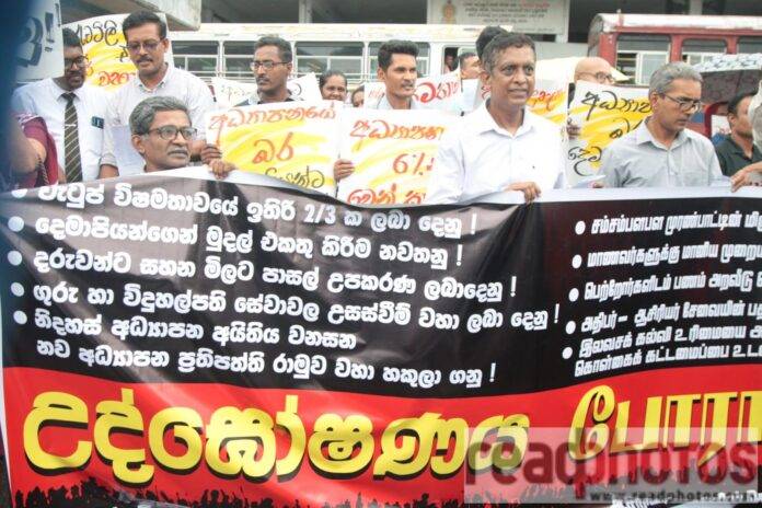 කොළඹ LNW:ගුරු විදුහල්පති සේවයේ වැටුප් විෂමතාව ඉවත් කිරීම හා දරුවන්ගේ අධ්යාපන අයිතිය සුරක්ෂිත කිරීමට බල කරමින් අද (12) ගුරු විදුහල්පති වෘත්තීය අමිති සන්ධානය විසින් උද්ඝෝෂණයක් සංවිධානය කර තිබුණි.