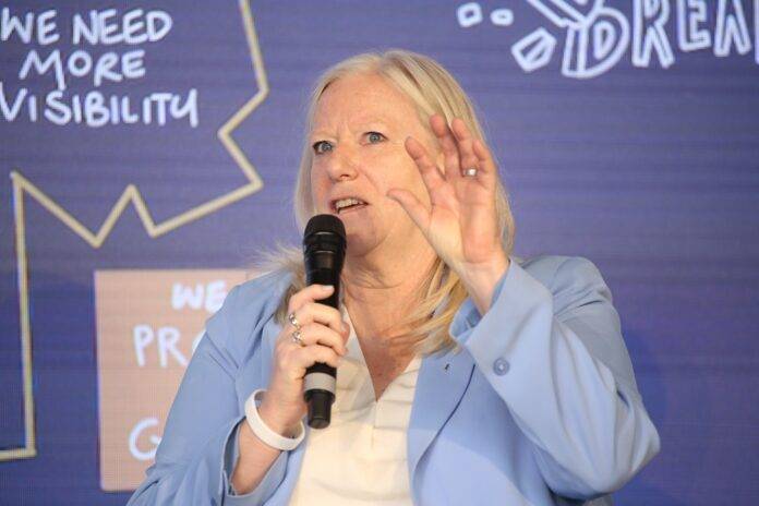 ඡායාරූපයෙන් දැක්වෙන්නේ කැතී සැඩිල්ර් ඉදිරි දස වස සබැඳි බලාපොරොත්තු සහගත මානවීය ප්රේමයෙන් පිරුණු වැඩ පිළිවෙල ගැන අදහස් දැක් වූ අවස්ථාවය.