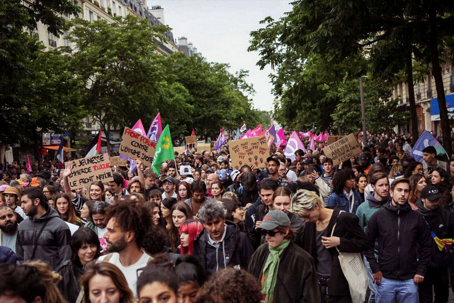 පසුගිය ඉරිදා යුරෝපීය පාර්ලිමේන්තු මැතිවරණයේදී සංක්රමණ විරෝධී ජාතික රැලිය (RN) ඓතිහාසික ජයග්රහණ ලබා ගත් දා සිට ප්රංශයේ දිනපතා ජනකායක් එක්රොක් වෙමින් සිටිති. දෙවන ලෝක යුද්ධයෙන් පසු ප්රංශයේ පළමු අන්ත දක්ෂිණාංශික ආන්ඩුව බිහි කරනු ඇතැයි මැතිවරනයට බිය වූ අය මෙලෙස සිය විරෝධයන් දක්වමින් තිබේ.