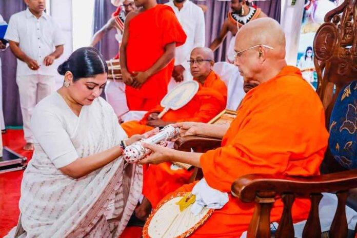 ත්රෛනිකායික මහා සංඝරත්නයේ ආශිර්වාදයෙන් ජලනි ප්රේමදාස මහත්මිය වෙත “ශ්රී සුගත ශාසන ප්රසාදනී” ගෞරව නාමය පිරිනැමීම ඊයේ (17) දියතලාව කහගොල්ල ශ්රී සුදර්ශනාරාම පුරාණ විහාරස්ථානයේ දී සිදුකෙරිණි.