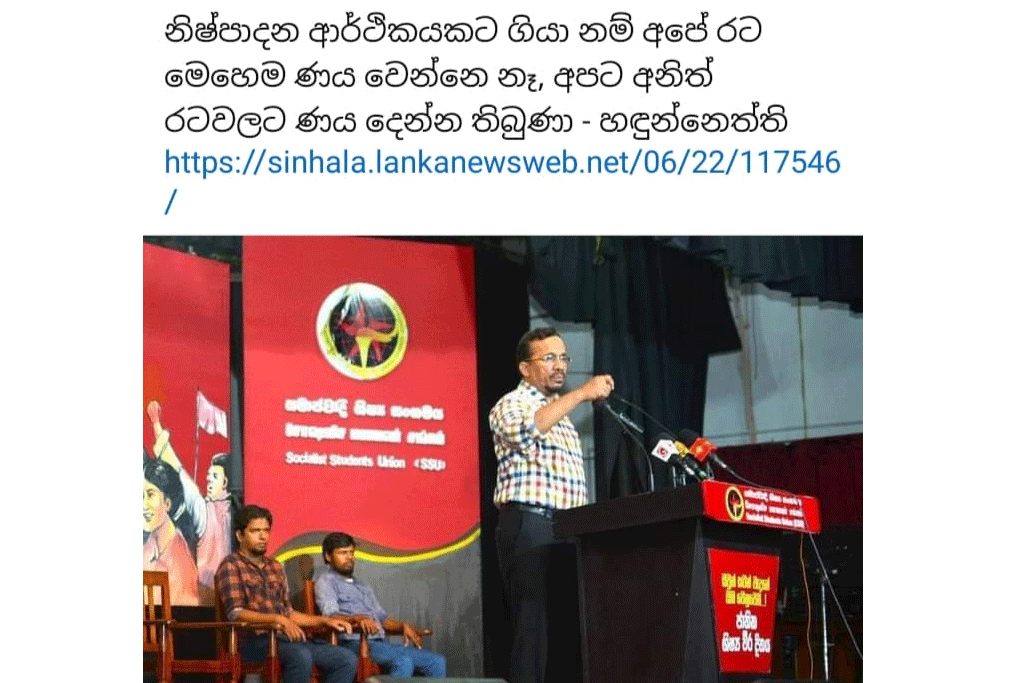 ඒ මිස නිශ්පාදන ආර්ථිකයක් යනු සිරිමාගේ අල බතල ආර්ථිකයේම තවත් විකාර වර්ෂන් එකක්ම මිස වෙන අන් කවරක්වත් නොවේ..