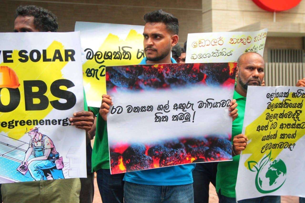 පුනර්ජනනීය බලශක්තිට එරෙහි ගල් අඟුරු, ඩීසල් මාෆියාව පරාජය කළ යුතු බවයි විරෝධතාකරුවන් එහිදී අවධාරණය කළේ.