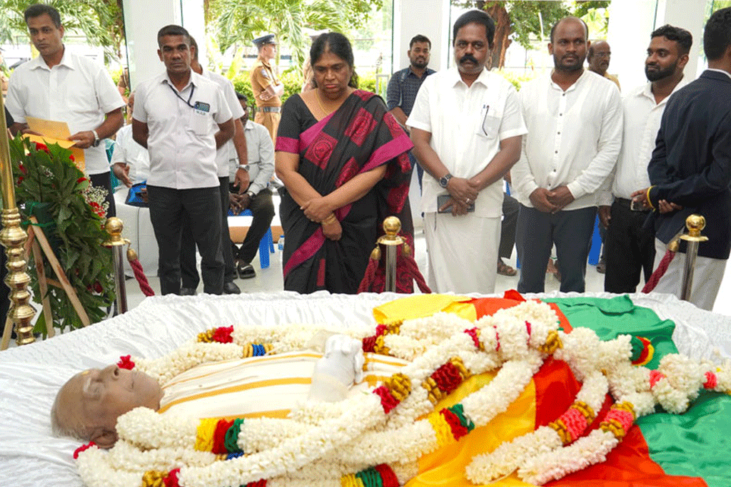 ඒ මහතාගේ දේහයට අවසන් ගෞරව දැක්වීම සඳහා උතුරු පළාත් ආණ්ඩුකාර පී. එස්. එම්. චාල්ස් මහත්මිය සහ දේශපාලන ක්රියාකාරිකයින් ඇතුළු ජනතාව විශාල පිරිසක් එක්ව සිටියහ.