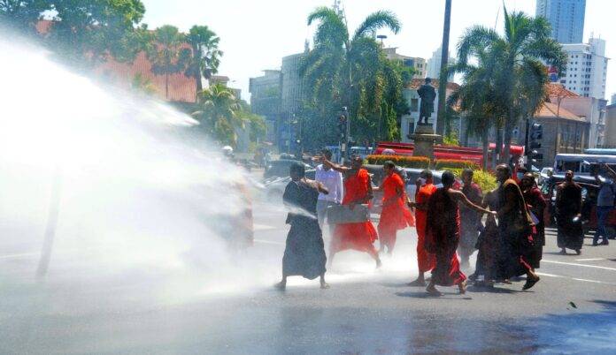 කොළඹ (LNW): ශාස්ත්රීය විෂයන් සඳහා සරසවිවලට සිසුන් බඳවාගැනීම අඩු කිරීමට එරෙහිව අන්තර් විශ්ව විද්යාල භික්ෂු බල මණ්ඩලය මෙම විරෝධය සංවිධානය කර තිබුණු අතර , එම විරෝධතා පා ගමන විසුරුවා හැරීමට පොලීසිය ජල ප්රහාරයක් එල්ලකර ඇත .