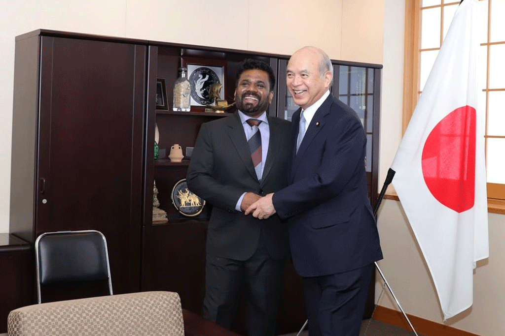 ජපානයෙහි සංචාරයක නිරත වී සිටින ජාතික ජන බලවේගයේ සහ ජනතා විමුක්ති පෙරමුණේ නායක අනුර කුමාර දිසානායක මහතා අද (22) පස්වරුවේ ජපානයේ විදේශ කටයුතු පිළිබඳ රාජ්ය අමාත්ය Tsuge Yoshifumi මහතා හමුවී තිබේ.