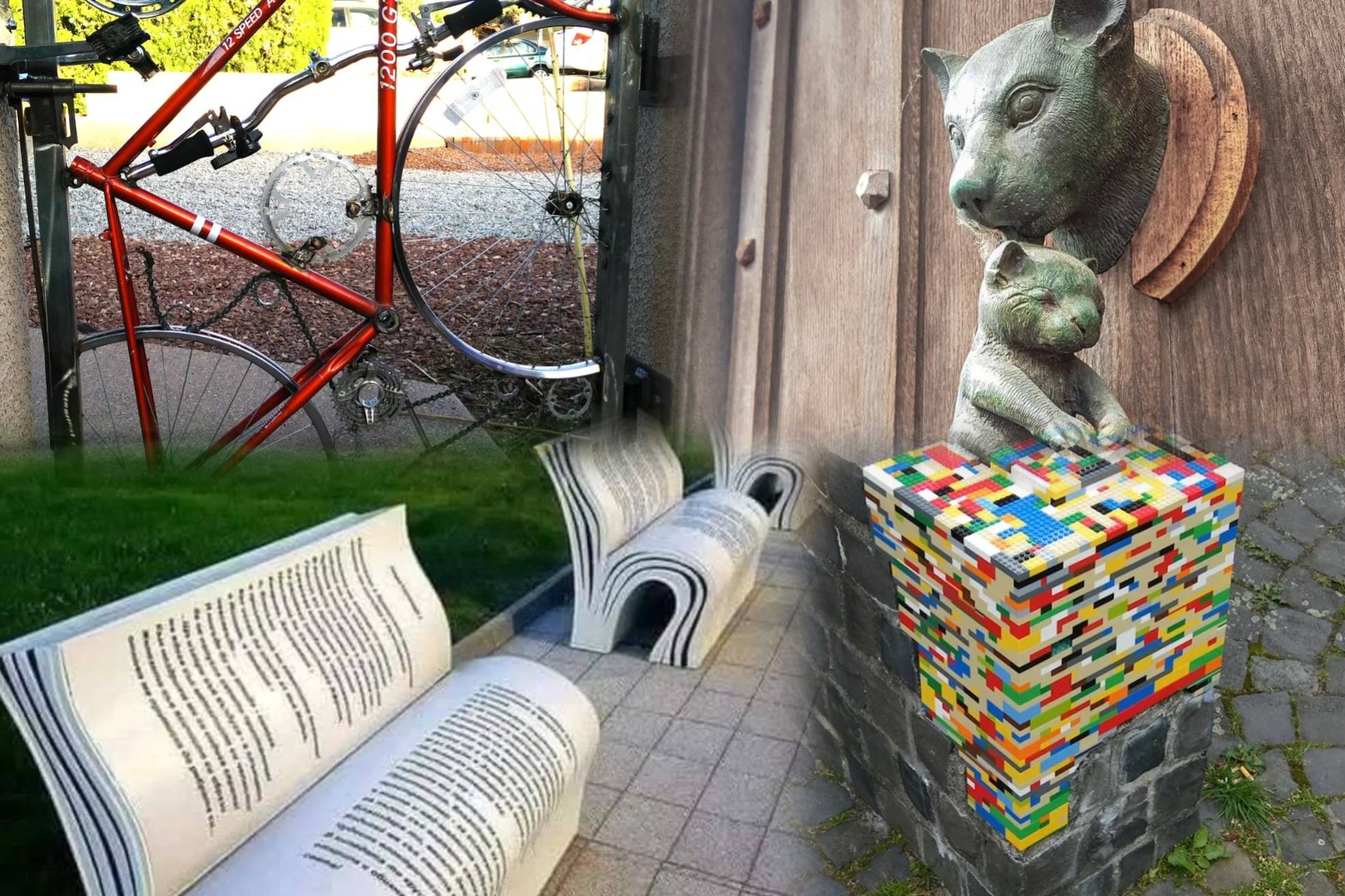 මෙහිදී හානියට පත් ගල් බිත්තියක් වර්ණවත් LEGO ගඩොල්වලින් නිර්මාණශීලීව අලුත්වැඩියා කර ඇත. මෙය වීදි කලාව සහ නාගරික ප්‍රතිසංස්කරණය සමඟ සම්මිශ්‍රනයකි.