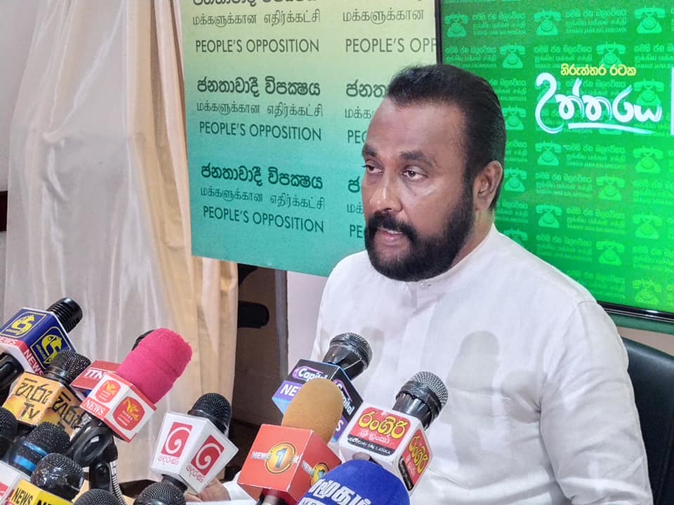 ”බාල බෙහෙත් ගෙනල්ලා දීලා මිනී පෙට්ටි සාප්පු මගින් අවසන් කටයුතු ටිකත් කරා ඇමතිවරයාට ඕන මිනී පෙට්ටි සාප්පු ටික හොඳට තියාගන්න මිසක් රෝහල්වල බෙහෙත් ටික දීලා ජනතාව නිරෝගීව තියාගන්න නෙමෙයි. ඒ නිසා මේ බෙහෙත් ජාවාරමේ බරපතල ප්‍රශ්න රාශියක් තියෙනවා. සෞඛ්‍යය අමාත්‍යාංශය එක්ක සම්බන්ධ වෙච්ච බෙහෙත් සම්බන්ධව පාතාලයක් තියෙනවා කියලා අපිට දැන් දැනගන්න ලැබිලා තියෙනවා. පාතාලය මොකද්ද කියලා අපි ඉදිරියේදී මාධ්‍යයට හෙළිකරනවා.රටේ ජනතාවට හරීන් ප්‍රනාන්දු,මනුෂ නානායක්කාරලා කියපු දේවල් තිත්ත වෙලා තියෙන්නේ ඒගොල්ලො පැනල ගිය අය. රාජපක්ෂලාගේ ඔඩොක්කුවට ගිය අය වගකීම දරාගන්න. සජිත් ගැන අපි බලා ගන්නම්. ජනතාව බලා ගනිවි. හරින් ප්‍රනාන්දුට පොඩි ප්‍රශ්නයක් තියෙනවා එයාලව ඉතින් අයින් කරලානේ අයින් කරපුවහම එහෙම තමයි.ජනාධිපති සටනට අපි සුදානම්. දැන් එමු සටනට අපිත් කඩුව අරන් එන්නේ බලමු කොහොමද දිනන්නෙ කියලා. රනිල් පොහොට්ටුව 134න් ජනාධිපති වුණා මිසක් ජනතාවගෙ ජන්දෙන් නෙමෙයිනෙ ජනාධිපති වුණේ.”යනුවෙන් මන්ත්‍රීවරයා තවදුරටත් කරුණු දැක්වීය.