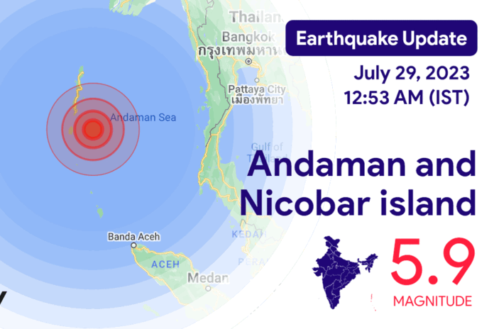 අන්දමන් සහ නිකොබාර් දූපත් ආශ්‍රිතව ප්‍රබල භූ කම්පනයක් වාර්තා වී ඇති බව භූ කම්පන පිළිබඳ ඉන්දීය ජාතික මධ්‍යස්ථානය පවසයි.