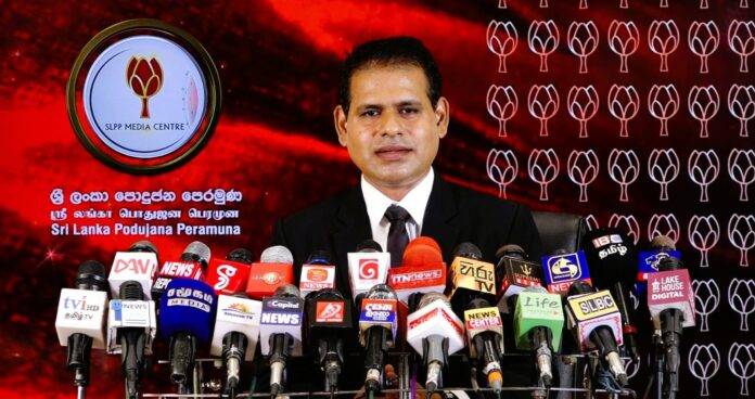 ඒ, අද (30) ශ්රී ලංකා පොදුජන පෙරමුණේ ප්රධාන කාර්යාලයේ පැවති මාධ්ය හමුවේදීය.