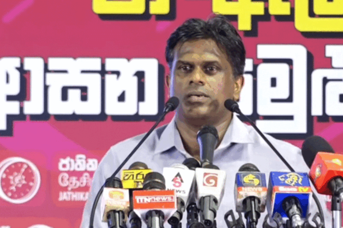 ඒ, ජාතික ජන බලවේගයේ ජා ඇල ආසන බලමණ්ඩල රැස්වීම අමතමිනි.