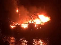 බහුදින ධීවර යාත්‍රාවක හදිසියේම ගින්නක්
