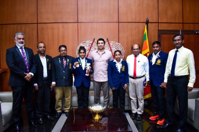 ඡායාරූපවලින් දැක්වෙන්නේ ක්‍රීඩා අමාත්‍යවරයා නෙත්මි අහිංසා සහ ඇයගේ පුහුණුකරු අමාත්‍යංශ පරිශ්‍රයේදි හමු වූ අවස්ථාවයි.