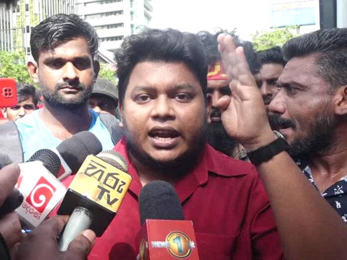 ”අපි රනිල් වික්‍රමසිංහට බය නැහැ. මොකද ඔහුට අවම වශයෙන් ජන මතයක්වත් නැහැ. මර්දනය ගෙනල්ල බය කරන්න හදනවා නම් විහිළු සපයන්න එපා කියල අපි කියනවා. අපි ඒ මර්දනයට හිස නමන්නේ නැහැ. ඒ නිසා අද දවසේදී අන්තර් විශ්ව විද්‍යාල ශිෂ්‍ය බල මණ්ඩලය විදිහට ඩීල් රනිල් රාජපක්ෂ ආණ්ඩුව පන්නන්න ඒ ආණ්ඩුවට ඉල්ලා අස්වෙන්න බලකරමින් විධායක ජනධිපති ධූරය අහෝසි කරන්න බලකරමින් ජනතා අයිතීන් දිනාගැනීමට බලකරමින් අඩපණ කර තිබෙන පාසල් හා සරසවි යථාතත්ත්වයට පත්කරන්න බලකරමින් අත්අඩංගුවේ සිටින සියලු අරගලකරුවන් නිදහස් කරන්න බලකරමින් මේ විරෝධය ගෙනයනවා.”