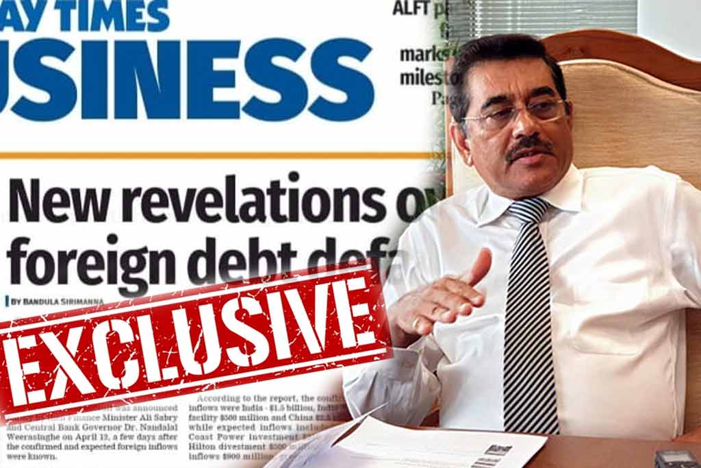 “New revelations over SL foreign debt default” මැයෙන් යුතුව පුවතක් ඊයේ (21) සන්ඩේ ටයිම්ස් පුවත්පතේ ව්‍යාපාරික පුවත් කර්තෘ, ජ්‍යේෂ්ඨ මාධ්‍යවේදී බන්දුල සිරිමාන්න මහතා විසින් රචනා කර පළ කර තිබුණු අතර එහි දැක්වෙන්නේ පසුගිය අප්‍රේල් 12 වනදා ශ්‍රී ලංකාව විදේශ ණය ආපසු ගෙවීම් පැහැර හරින බව නිවේදනය කර ඇත්තේ මෙරට විදේශ සංචිත ශක්තිමත් කිරීම උදෙසා ඇමරිකානු ඩොලර් බිලියන 10.7ක මුදලක් ණය සහ ව්‍යාපෘති ඔස්සේ ලබාගැනීමට රජය අපේක්ෂා කරමින් සිටියදී බවයි. ඉන්දියාව, චීනය, කටාර් රාජ්‍යය ඇතුළු පාර්ශ්ව කිහිපයකින් මෙම මුදල සපයා ගැනීමට අපේක්ෂිතව පැවති අතර එය සාර්ථක වී නම් 2022 වසරේ ණය ගෙවීම් පැහැර නොහැර කටයුතු කිරීමට ඉඩ තිබුණු බවත් එහි සඳහන්.