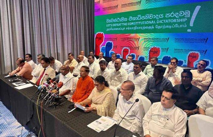 හිටපු ජනාධිපති රනිල් වික්රමසිංහ මහතා අත්අඩංගුවට ගෙන රක්ෂිත බන්ධනාගාරගත කිරීම සම්බන්ධයෙන් විපක්ෂයේ දේශපාලන පක්ෂ රැසක නියෝජිතයින් එක්ව විශේෂ මාධ්ය හමුවක් අද (24) පෙරවරුවේ පවත්වන ලදී.
