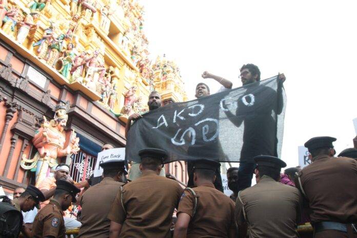 විරෝධතාකරුවන් මේ වන විට ජනාධිපති අනුර කුමාර දිසානායක මහතා වෙත විරෝධය පළකරමින් සිටින අතර AKD GO ගම ලෙස විරෝධතා පුවරු ප්රදර්ශනය කර තිබේ.