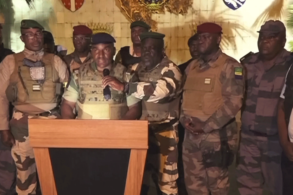 ගැබොන්හි ජනාධිපති අලි බොන්ගෝ ඔන්ඩිම්බා 64.27%ක ජන්ද ප්‍රතිපලයක් ලබා ගනිමින් තුන්වන වාරයක් සඳහා යලි තේරී පත් වූ බවට ජාතික මැතිවරණ අධිකාරිය විසින් ඊයේ(29)දිනයේදී ප්‍රකාශ කිරීමත් සමඟ ජ්‍යෙෂ්ඨ ගැබෝන් හමුදා නිලධාරීන් පිරිසක් ජාතික රූපවාහිනියේ පෙනී සිටිමින්ප්‍රකාශ කර තිබුණේ, මැතිවරණ ප්‍රතිඵල අවලංගු කළ බවත්, නැවත දැනුම් දෙන තුරු සියලු දේශසීමා වසා දැමූ බවත්, ආන්ඩුව, සෙනෙට් සභාව, ජාතික සභාව, ව්‍යවස්ථාපිත අධිකරණය සහ මැතිවරණ ආයතනය යන රාජ්‍ය ආයතන විසුරුවා හැර ඇති බවත්, වර්තමාන පාලනයට තිත තැබීමෙන් සාමය ආරක්ෂා කිරීමට තීරණය කළ බවත්ය.