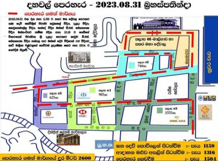 කොළඹ (LNW):  මහනුවර ඇසළ පෙරහැර මංගල්‍යයේ දහවල් පෙරහැර වෙනුවෙන් විශේෂ රථ වාහන සැලැස්මක්  ක්‍රියාත්මක බව පොලීසිය පවසන අතර,  අද (31) දහවල් 11.59ට පෙරහැර ඝණදෙවි කෝවිලෙන් පිටත්ව කටුකැලේ වීථිය, දළදා වීථිය, කොටුගොඩැල්ල වීථිය, කන්දේ වීථිය එස්සේ ඩී.එස්. සේනානායක වීථිය මංසන්ධියට පැමිණ දහවල්  1.16ට ගෙඩිගේ විහාරයෙන් පිටත් වේ.