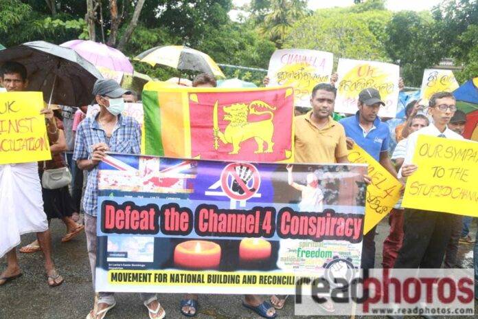 “පාස්කු ප්රහාරය සම්බන්දයෙන් ආන්දෝලනාත්මක වාර්තා වැඩසටහනක් ප්රචාරය කල බ්රිතාන්යයේ චැනල් 4 නාලිකාව අත් හිටුවන ලෙස ද චැනල් 4 කුමන්ත්රණය පරදවමු!” යන සටන් පාඨය ද මුල් කර ගනිමින් නිහඬ විරෝධතා ව්යාපාරයක් අද (07)දින දහවල් කොළඹ බෞද්ධාලෝක මාවතේ පිහිටි බ්රිතාන්යය මහ කොමසාරිස් කාර්යාලය ඉදිරිපිටදී පැවැත්විනි.