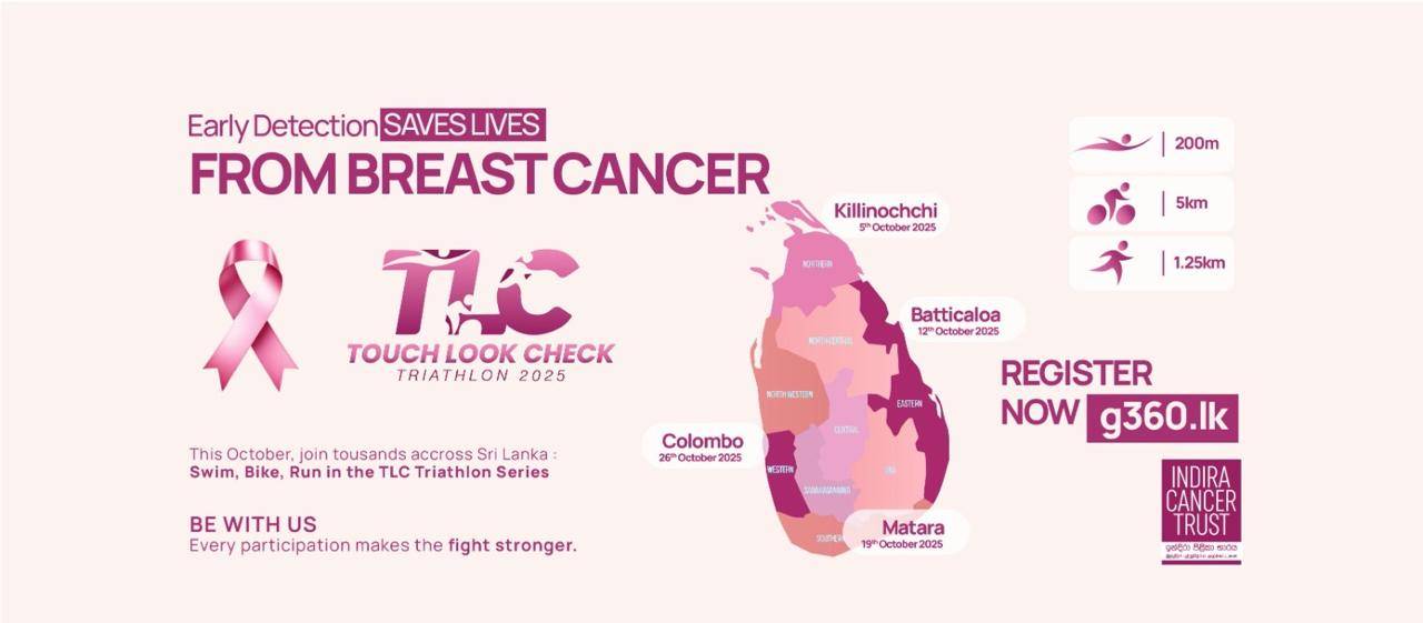 4,000 කට අධික සහභාගිවන්නන් සහ පුළුල් මාධ්ය සහභාගීත්වයක් සහිතව, TLC Triathlon 2025 ශ්රී ලංකාවේ මෙතෙක් උත්සාහ කරන ලද විශාලතම පියයුරු පිළිකා දැනුවත් කිරීමේ ව්යාපාරය වනු ඇත. එය තරඟයක් පමණක් නොව, පියයුරු සෞඛ්ය, කල්තියා හඳුනා ගැනීම සහ වැළැක්වීම පිළිබඳව රට කතා කරන ආකාරය පිළිබඳ විප්ලවයකි. ඇය වෙනුවෙන් එය කරන්න. ඔබ ආදරය කරන සෑම කාන්තාවක් වෙනුවෙන්ම එය කරන්න. මේ ඔක්තෝබර් මාසයේදී, අරමුණක් ඇතිව ශ්රී ලංකාව රෝස පැහැයට හරවමු.