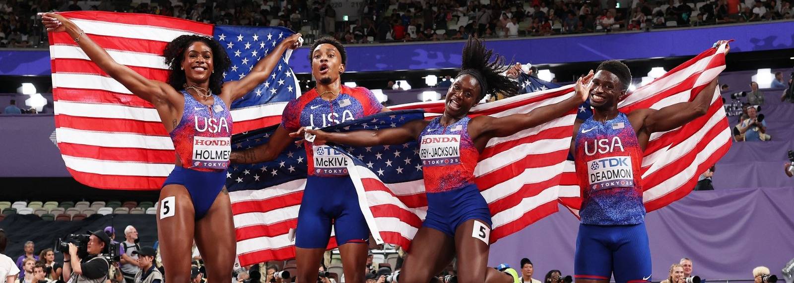 ජපානයේ පැවත්වෙන ලෝක මලල ක්‍රීඩා සූරතාවලියේ මීටර් 400 මිශ්‍ර සහය දිවිමේ තරගයේ රන් පදක්කම දිනා ගන්නට ඇමෙරිකාව සමත් වෙනවා.එහෙත් මේ තරගය පුරා දකින්නට ලැබුණු විශේෂය තමයි නැවතත් මලල ක්‍රීඩාව යුරෝපා රටවල අවධානයට ලක්ව තිබෙන බව පෙනෙන්නට තිබීම.කෙටි දුර ඉසව්වලදී බොහෝ විට ඇමෙරිකානු මහද්වීපයට ආසන්න දූපත් ක්‍රීඩක ක්‍රීඩිකාවන් ඇමෙරිකාවටත් අභියෝග කළ හැකි මට්ටමට තරග වදින බව සුලබ කරුණක් වුවත් මෙම තරගයේ අවසාන කණ්ඩායම් 8 ට තේරුණු කණ්ඩායම් අතරින් පහක්ම යුරෝපා රටවල් වුණා.