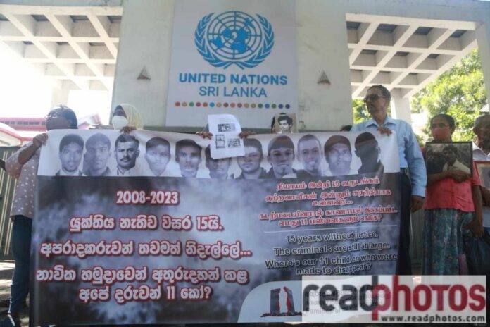 “2008-2023 යුක්තිය නැතිව වසර 15 යි. අපරාධකරුවන් තවමත් නිදැල්ලේ… නාවික හමුදාවෙන් අතුරුදහන් කල අපේ දරුවන් 11 කෝ?”