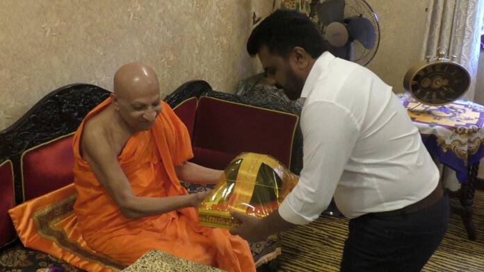 ජනාධිපතිධූරයේ දිව්රුම්දීමෙන් අනතුරුව මහනුවරට පැමිණි ජනාධිපතිවරයා දන්ත ධාතූන් වහන්සේ වැද පුදා ගැනීමෙන් පසු සියම් මහ නිකායේ මල්වතු හා අස්ගිරි පාර්ශවයේ මහා නායක හිමියන් බැහැ දැක ආශිර්වාද ලබා ගැනිමේදී අස්ගිරි පාර්ශවයේ අනුනායක හිමියන් අද (23) පස්වරුවේ මේ බව සඳහන් කළේය.