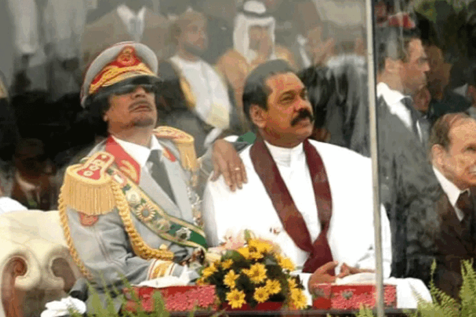 එතනදි මහින්ද මහත්තයා ලිබියානු තානාපති කාර්යාලයේ නිලධාරියෙකුට කියලා තිබුණා ලු ලිබියාවේ හිටපු ජනාධිපති කර්නල් ගඩාෆි හිටියා නම් අද ලිබියානු ජනතාවට මේ වගේ ඉරණමක් අත්වෙන්නේ නෑ කියලා.