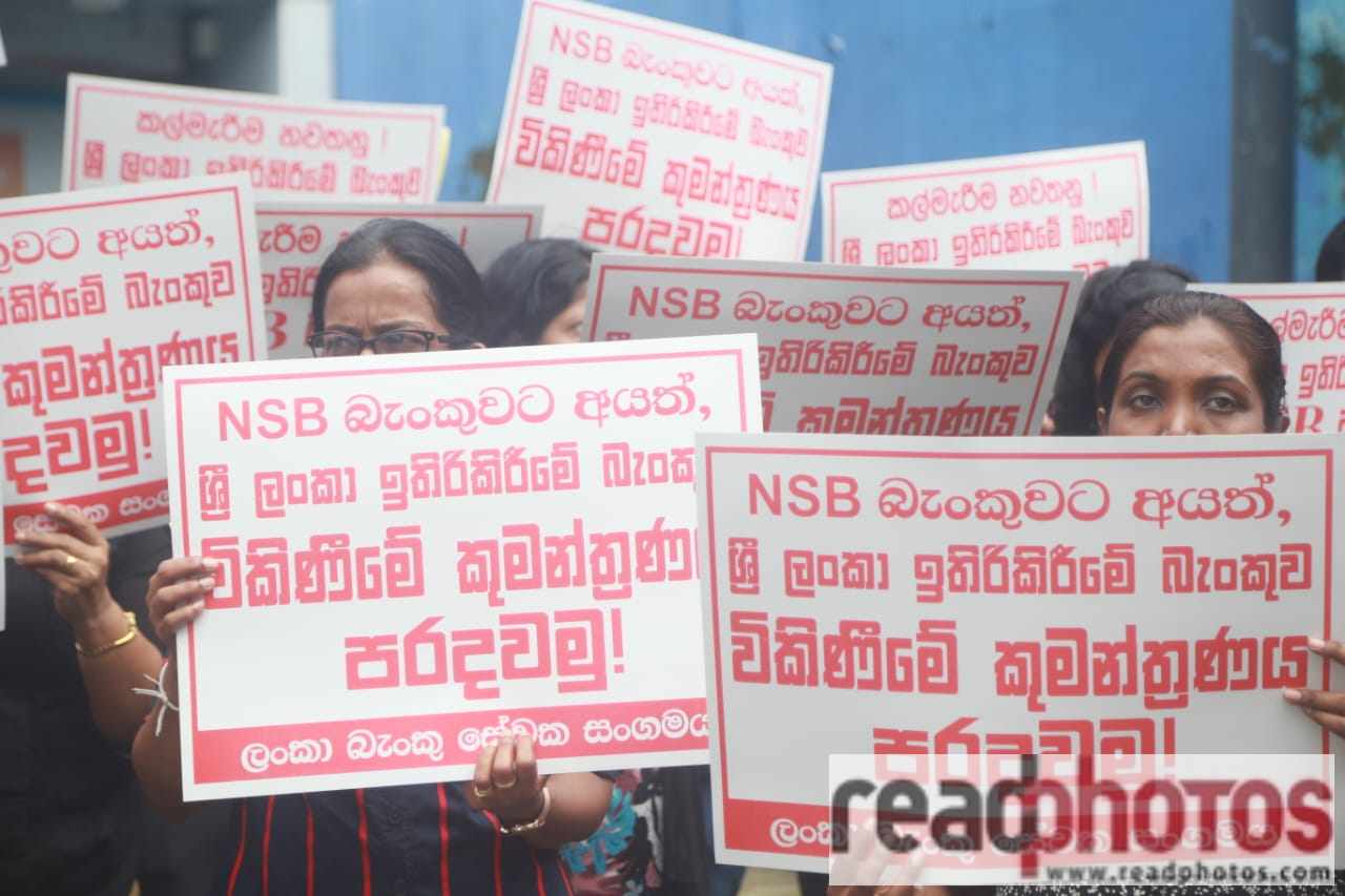 ජාතික ඉතිරි කිරීමේ බැංකුවට අයත් ශ්රි ලංකා ඉතිරි කිරීමේ බැංකුව විකිණීමේ කුමන්ත්රණය පරදවමු! යන සටන් පාඨය මුල් කරගනිමින් සහ තවත් සටන් පාඨ කිහිපයක් ඇතුලු ඉල්ලීම් වලට වහා විසඳුම් ලබා දෙන ලෙස ආණ්ඩුවට බල කරමින් විරෝධතා උද්ඝෝෂණ ව්යාපාරයක් අද (04)දින දහවල් බොරැල්ල වෝඩ් පෙදෙසේ පිහිටි ශ්රි ලංකා ඉතිරි කිරීමේ බැංකුවේ ප්රධාන කාර්යාලය ඉදිරිපිටදී පැවැත්විනි.
