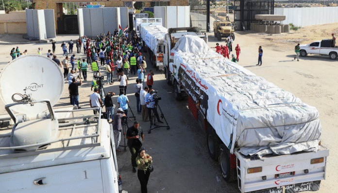 මේවන විට දකුණු ගාසා තීරයේ රෆා දේශසීමාව හරහා සහ ඊජිප්තුව හරහා ආධාර ට්‍රක් රථ විශාල ප්‍රමාණයක් පැමිණෙමින් තිබෙන බව විදෙස් මාධ්‍ය වාර්තා කරයි.