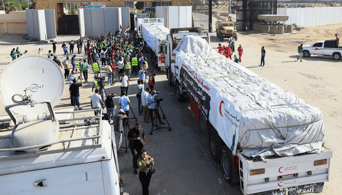 ආධාර නිලධාරීන් පවසා ඇත්තේ, අද (12) උදැසන සිට ඊජිප්තුව රෆා හරස් මාර්ගයේ ආධාර පටවාගත් ට්‍රක් රථ 200ක් ගාසා තීරයට ඇතුළු වීමට සූදානම් ව සිටි බවයි ආධාර නිලධාරීන් පවසා ඇත්තේ.