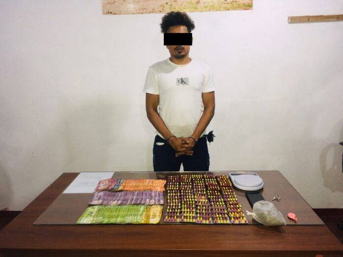 හෙරොයින් මත්ද්‍රව්‍ය ග්‍රෑම් 04, මි.ග්‍රෑ. 570ක්, කේරළ ගංජා ග්‍රෑම් 200ක්, මත් කරල් 800ක්, ඩිජිටල් තරාදි 01ක් සහ ජංගම දුරකතනයක් ද සැකකරු සන්තකයේ තිබී සොයාගෙන ඇති බව වාර්තා වේ.