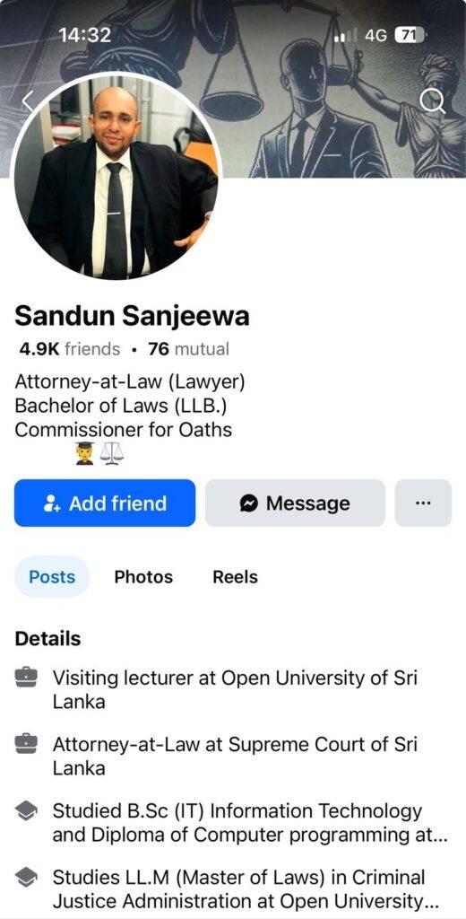 අධික දියවැඩියා රෝගයෙන් පෙළෙන නිසා කකුලේ ඇඟිලි කීපයක් ඉවත් කරන ලද ශල්‍යකර්මයක් මෑතකදී සිදුකරඇති බැවින්, අපරාධ පරීක්ෂණ දෙපාර්තමේන්තුවේ පරිගණක අපරාධ ඒකකය මගින් සිදු කරනලද තාක්ෂණික විමර්ශනයකින් අනතුරුව 2025/10/03 දින අත් අඩංගුවට ගත් සැකකරු ඇප මත මුදාහැරියද 2015.10.14 දින නඩුව යළි කැඳවූ අවස්ථාවේ සැකකාර නීතීඥයාගේ ක්‍රියාකලාපය පිළිබඳ කොළඹ ප්‍රදාන මහේස්ත්‍රාත් අසංක බෝදරගම මහතා දැඩි දෝශදර්ශනයට ලක් කරන ලදී. 2025/10/28 වන දින නඩුව යළි කැඳවීමට නියෝග කරන ලදී.
