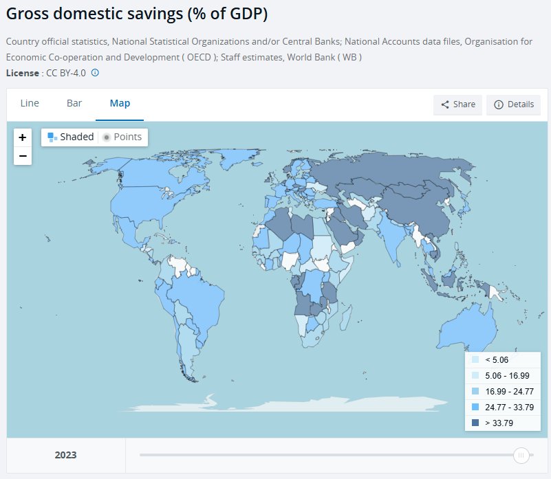 පහත තිබෙන්නේ 2023දී තෝරාගත් රටවල් කිහිපයක දේශීය ඉතුරුම් අනුපාත දදේනි ප්රතිශත ලෙස.