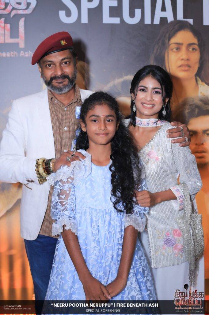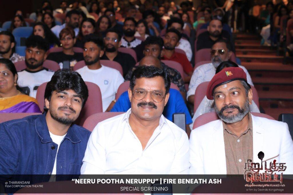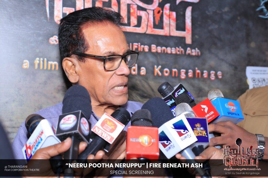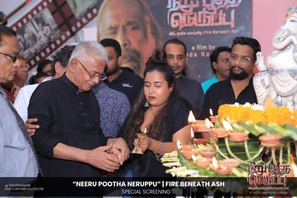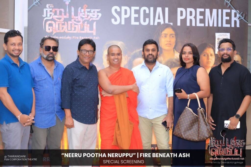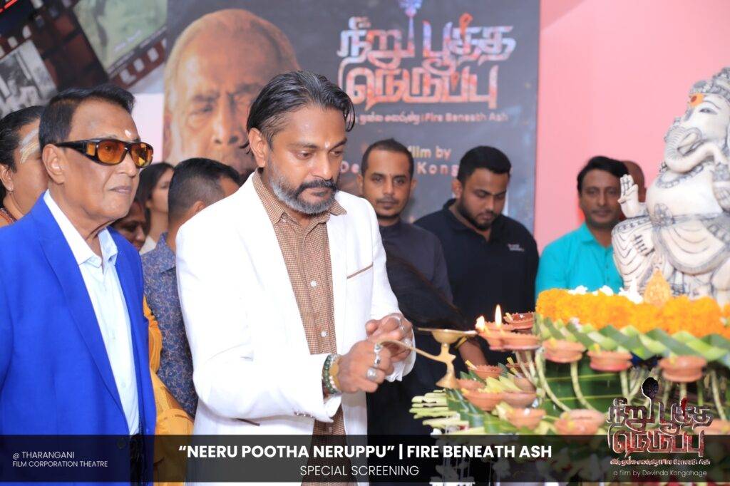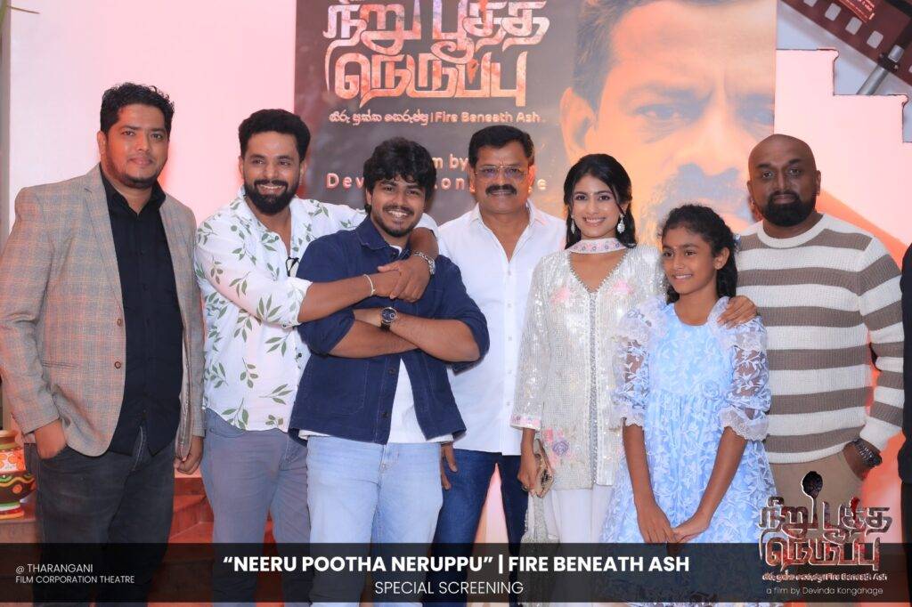 කොළඹ LNW:දේවින්ද කෝන්ගහගේ අධ්යක්ෂණය කරන ලද ” නීරු පූත්ත නෙරුප්පු ” අළු යට ගිනි | Fire Beneath Ash චිත්රපටයේ විශේෂ දැක්මක් පසුගිය දා (2025 ඔක්තෝම්බර් 15) ජාතික චිත්රපට සංස්ථා තරංගනී සිනමාශාලාවේ දී පැවැත්විය. මෙම අවස්ථාවට ” නීරු පූත්ත නෙරුප්පු ” චිත්රපටයේ ප්රධාන චරිතය රඟපාන ඉන්දීය ජනප්රිය රංගන ශිල්පී බෝස් වෙන්කට් සහ සිනමාවට හඳුන්වා දෙන ඔහුගේ පුත් තේජු වෙනක්ට් සහභාගී වූ අතර ඊට අමතරව ජ්යේෂ්ඨ සිනමාවේදී ධර්මසිරි බණ්ඩාරනායක, චන්ද්රන් රත්නම් සහ දේශපාලනඥයින්, කලාකරුවන්, මාධ්යවේදීන් සහ හිතවතුන් ඇතුළු පිරිසක් එක්වසිටියහ.
