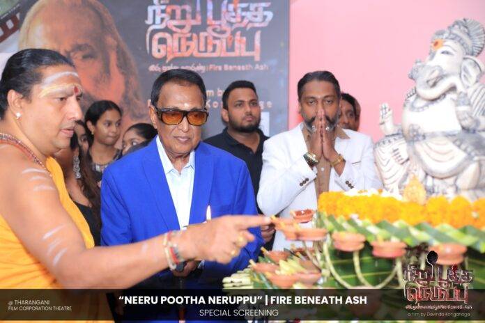 කොළඹ LNW:දේවින්ද කෝන්ගහගේ අධ්යක්ෂණය කරන ලද ” නීරු පූත්ත නෙරුප්පු ” අළු යට ගිනි | Fire Beneath Ash චිත්රපටයේ විශේෂ දැක්මක් පසුගිය දා (2025 ඔක්තෝම්බර් 15) ජාතික චිත්රපට සංස්ථා තරංගනී සිනමාශාලාවේ දී පැවැත්විය. මෙම අවස්ථාවට ” නීරු පූත්ත නෙරුප්පු ” චිත්රපටයේ ප්රධාන චරිතය රඟපාන ඉන්දීය ජනප්රිය රංගන ශිල්පී බෝස් වෙන්කට් සහ සිනමාවට හඳුන්වා දෙන ඔහුගේ පුත් තේජු වෙනක්ට් සහභාගී වූ අතර ඊට අමතරව ජ්යේෂ්ඨ සිනමාවේදී ධර්මසිරි බණ්ඩාරනායක, චන්ද්රන් රත්නම් සහ දේශපාලනඥයින්, කලාකරුවන්, මාධ්යවේදීන් සහ හිතවතුන් ඇතුළු පිරිසක් එක්වසිටියහ.
